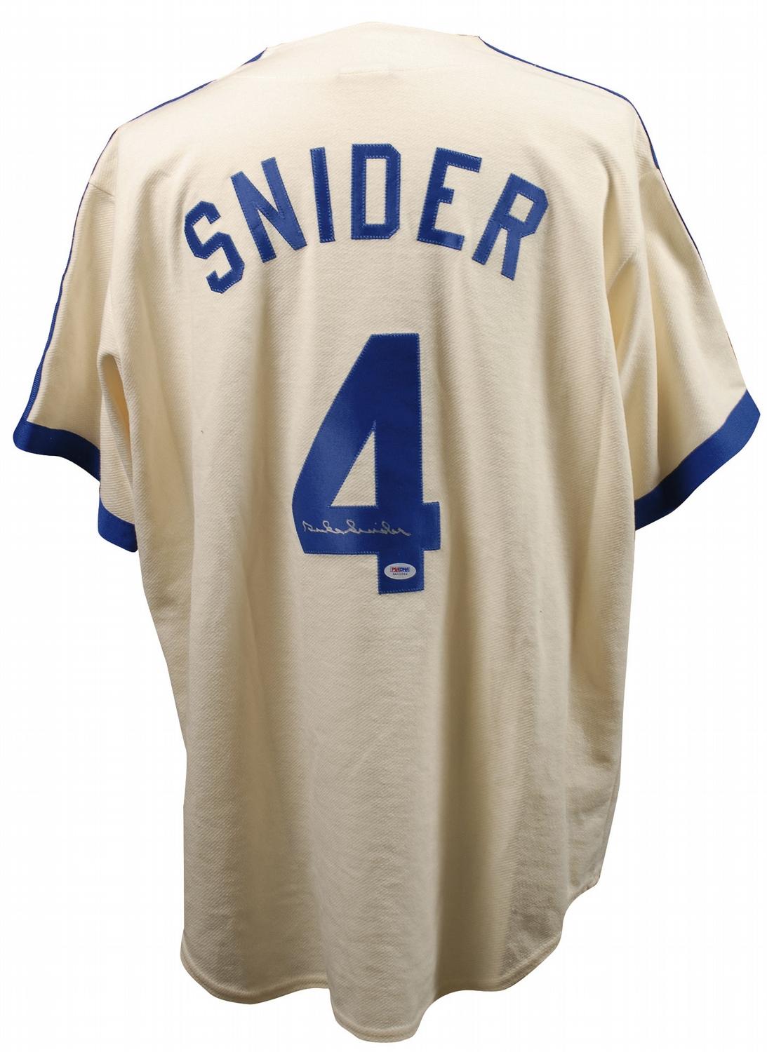 Official Majestic Cooperstown Collection replica Dodgers throwback baseball jersey, with sewn on letters and numbers, signed in silver ink on the number on the back. In very fine condition, with a PSA/DNA authentication label affixed to number.