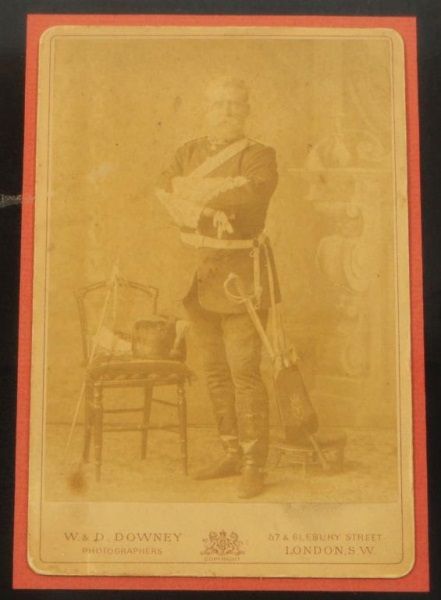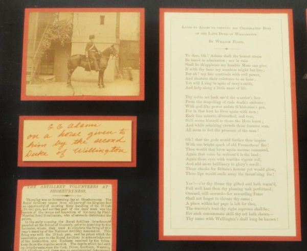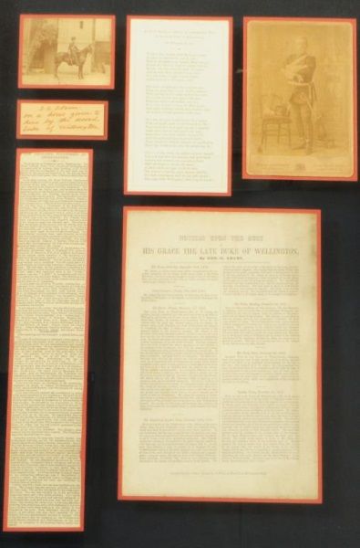 In Museum Shadow box frame with information and cabinet card. Frame measures 19" x 26".