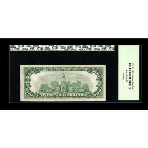 <B>Duluth, MN</B></I> - $100 1929 Ty. 1 <B>The Northern NB</B></I> Ch. # 9327<BR>This institution's issuance of small size only included $50s and $100s. This piece has no folds of significance. <B>PCGS Very Fine 30.</B></I><BR><BR><b>Shipping:</b> Coins & Currency (<a target="_blank" href="http://www.heritageauctions.com/common/shipping.php">view shipping information</a>)