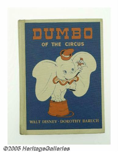 <B>Dumbo of the Circus (D. C. Heath & Company, 1948).</B></I> The most difficult to find of the Heath series, the winning bidder will be rewarded not only with by a very sharp copy of this volume -- but also by the presence of the extremely rare dust jacket! Most Heath books were shipped without dust jackets. The book itself is the best copy we've seen, with a really sharp cover that's retained its gloss. The jacket shows considerably more wear, but that's not surprising -- and it <I>is</B></I> scarce! In fact, considering the book's condition and the presence of the dust jacket, this copy could be considered the pot of gold at the end of the D.C. Heath rainbow! <I>From the Larry Jacobs Collection.</B></I>
