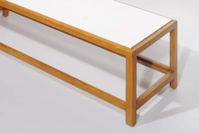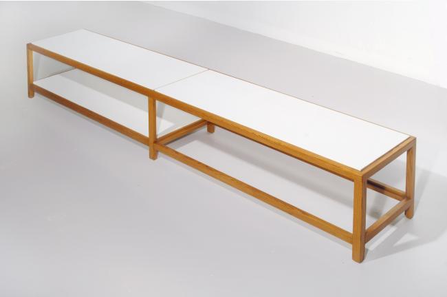15h x 86w x 15.5d inches, wood and laminated panel, white, signed on the bottom, original very good condition