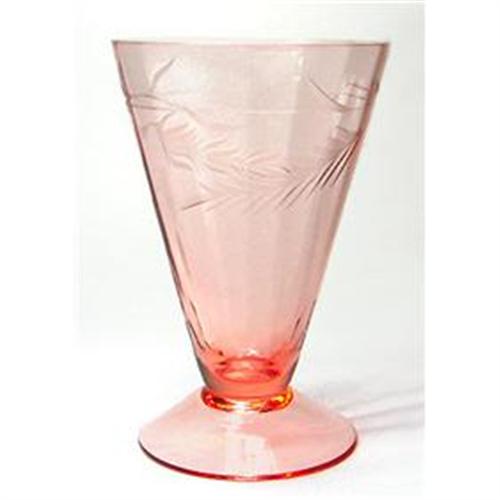 Produced by The Dunbar Glass Co. circa 1930s with a floral wheel cut design. This set of four (4) salmon pink cone shaped Elegant Depression Glass footed tumblers measure 5 1/2 inches tall and are all in excellent condition. Although the photos shows only one there are four matching tumblers.