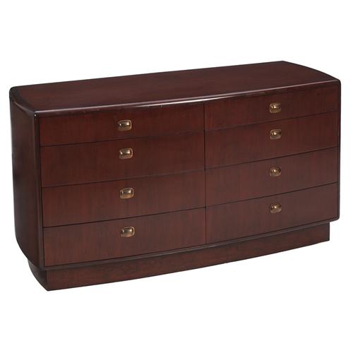 Dunbar dresser, mahogany cabinet with curved front and sides, eight drawers with brass pulls, original finish,56in.w x 21in.d x 29in.h, very good condition