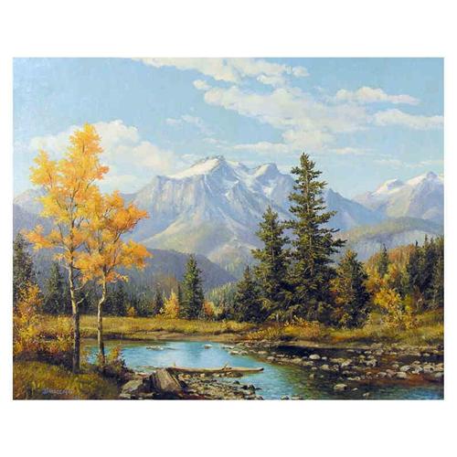 [Canadian 1920-1991] AUTUMN ALONG THE KANANASKIS, ALTA; 1963 Oil on canvas 24 x 30 in. Signed & dated.