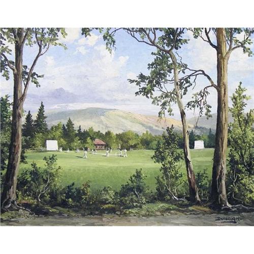 Canadian [1920-1991] CRICKET IN RILEY PARK; 1944 oil on board 16 x 20 in. (40.6 x 50.8 cm) signed, titled & dated Provenance: Gainsborough Galleries, Calgary