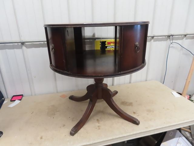 Duncan Phyfe Stand w/ Lazy Suzan Style Rotating Top and Leather Inlay