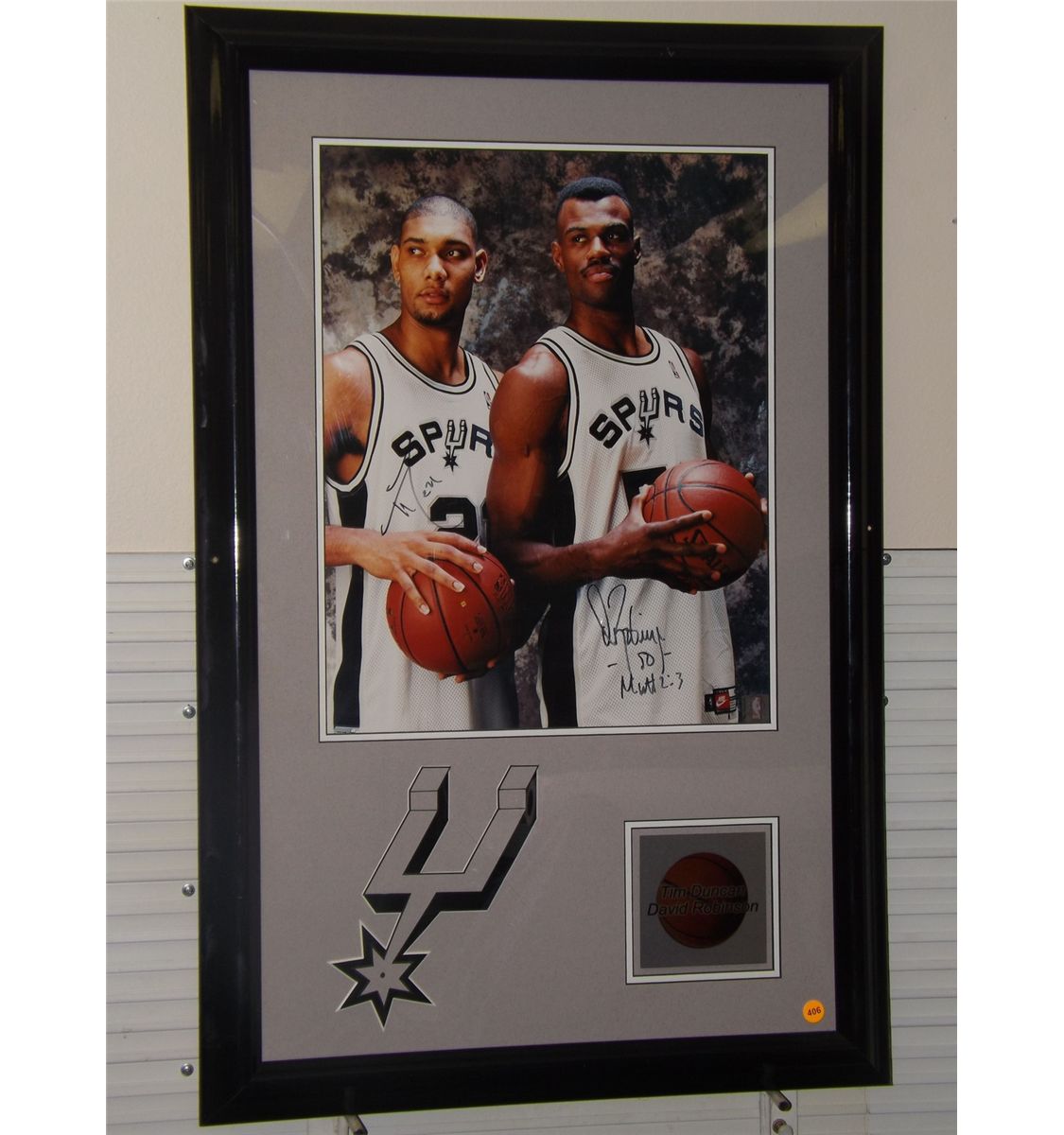 Duncan and Robinson Autographed Photo. Framed and Matted Display with Photo Autographed by Tim Duncan and David Robinson. Appraised or estimated retail value $800. COA by Christopher Morales. All Sales Final. Please see terms and conditions of auction.