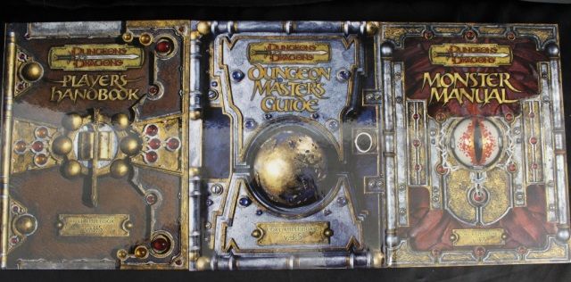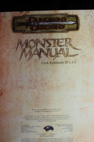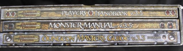 This listing is for a Dungeons and Dragons 3.5 handbook box-set. Included is the Player's Handbook, the Dungeon Masters Guide, and the Monster Manual. All of the books are from the 3.5 set and are in excellent condition. The books have been looked through once or twice and have remained on a shelf ever since. very little shelf wear or tear.