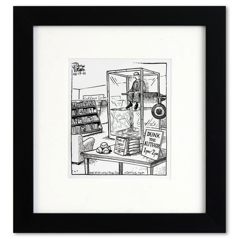 Dunk the Author by Bizarro Original. Please see photos and description for all available information. Enter a surreal and satirical world of twisted imagination and award winning creativity. "Dunk the Author" is an original pen & ink drawing on paper by Dan Piraro, creator of the critically acclaimed and award winning comic strip, Bizarro. This piece is hand signed, comes custom framed and includes a letter of authenticity. Measures approximately 12" x 11" (frame), 7" x 6" (image).This item requires special handling and may have a longer than usual turnaround.