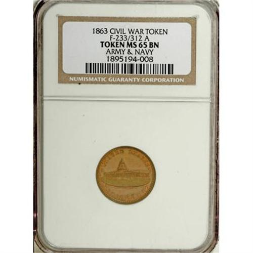 <B>Duo of MS65 NGC Civil War Patriotic Tokens.</B></I> Two Civil War patriotic tokens, <B>Fuld-117/420A </B></I>and <B>233/312A, </B></I>both<B> MS65 Brown NGC.</B></I><BR><BR><b>Shipping:</b> Coins & Currency (<a target="_blank" href="http://www.heritageauctions.com/common/shipping.php">view shipping information</a>)
