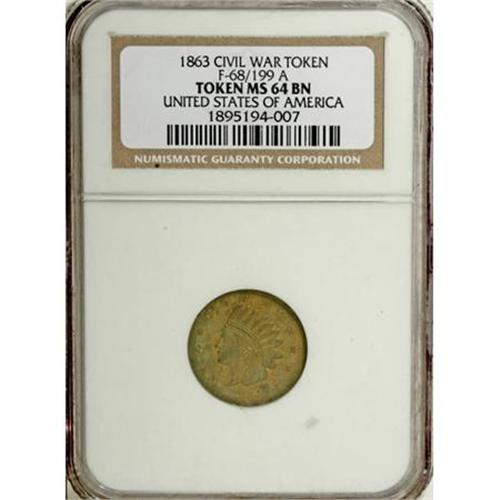 <B>Duo of Civil War Tokens.</B></I><BR> <B>Fuld-68/199A NGC MS64 Brown, </B></I>and <B>630BS-1a NGC MS65 Red & Brown.</B></I><BR><BR><b>Shipping:</b> Coins & Currency (<a target="_blank" href="http://www.heritageauctions.com/common/shipping.php">view shipping information</a>)