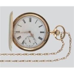 Svájc, 1902 - 1922 közötti bécsi behozatali jeggyel, 14 k arany tok, gilosált díszítéssel, 15 köves anker szerkezet, márkajelzés nélkül, toksz:534481, kis horpadással, muködoképes, óralánc: 14 k arany, 9,7 g, fantáziaszemes ankerlánc, karabíner záródással
