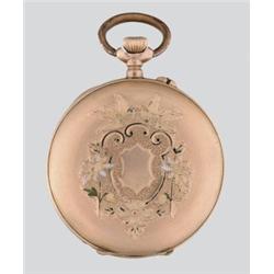 Svájc, 1867 - 1902 közötti behozatali jeggyel, 14 k arany tok, vésett virágmintával, márka nélkül, arabszámos másodpercmutatós számlap, anker szerkezet, Nr.101998, muködoképes, br. 26 g