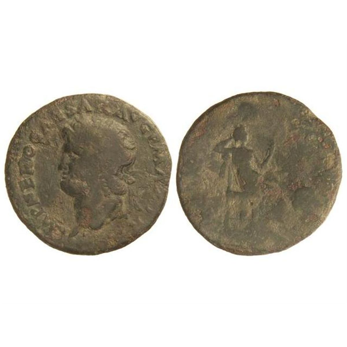 ROMAN COINS: ROMAN EMPIRE - Dupondio. - Acuñada el 54-55 d.C. - NERÓN. - Anv.: IMP. NERO CAESAR AVg. P. MAX. TR. P. P. P. Cabeza radiada a izquierda. Rev.: (SECVRITAS AVGVSTI S. C.). Seguridad sentada a derecha. 11,30 grs. Pátina oscura. C-325. BC/MC. - -
