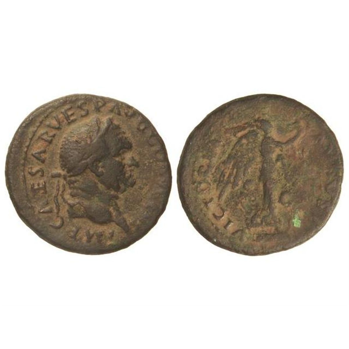 ROMAN COINS: ROMAN EMPIRE - Dupondio. - Acuñada el 71 d.C. - VESPASIANO. - Anv.: IMP. CAES. VESPASIAN. AVG. COS. III. Cabeza radiada a derecha. Rev.: ROMA S. C. Roma sentada a izquierda. 11,90 grs. BC+. - -