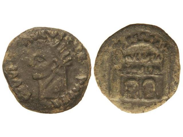 Dupondio. ÉPOCA DE TIBERIO. EMERITA. Anv.: DIVVS AVGVSTVS PATER. Cabeza radiada de Augusto a izquierda. Rev.: AVGVSTA EMERITA. Puerta. 15,43 grs. Pátina oscura. (Oxidaciones). AB-1035. MBC.