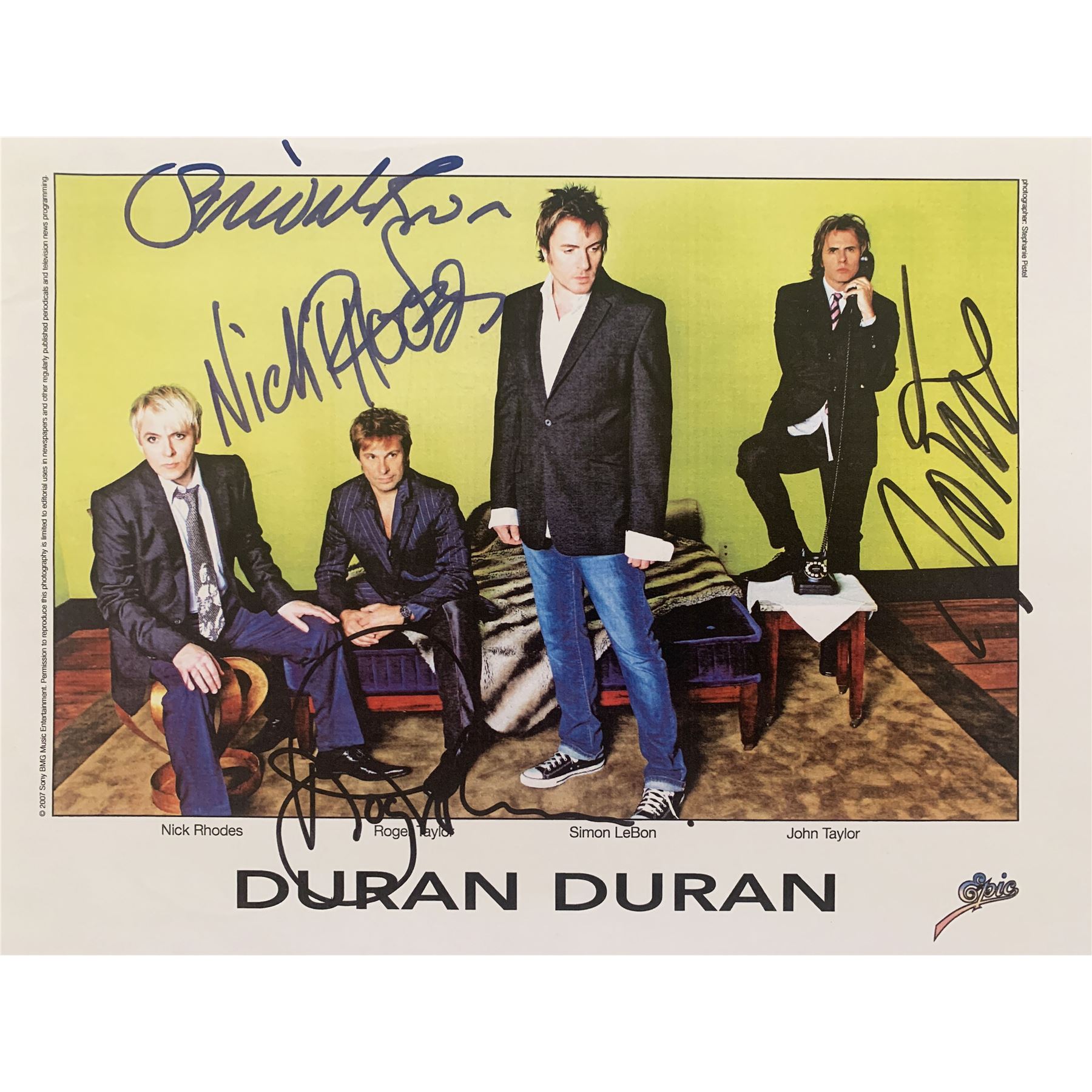 Duran Duran signed photo autographed by Nick Rhodes, Roger Taylor, Simon LeBon, and John Taylor . 11x9 inches
