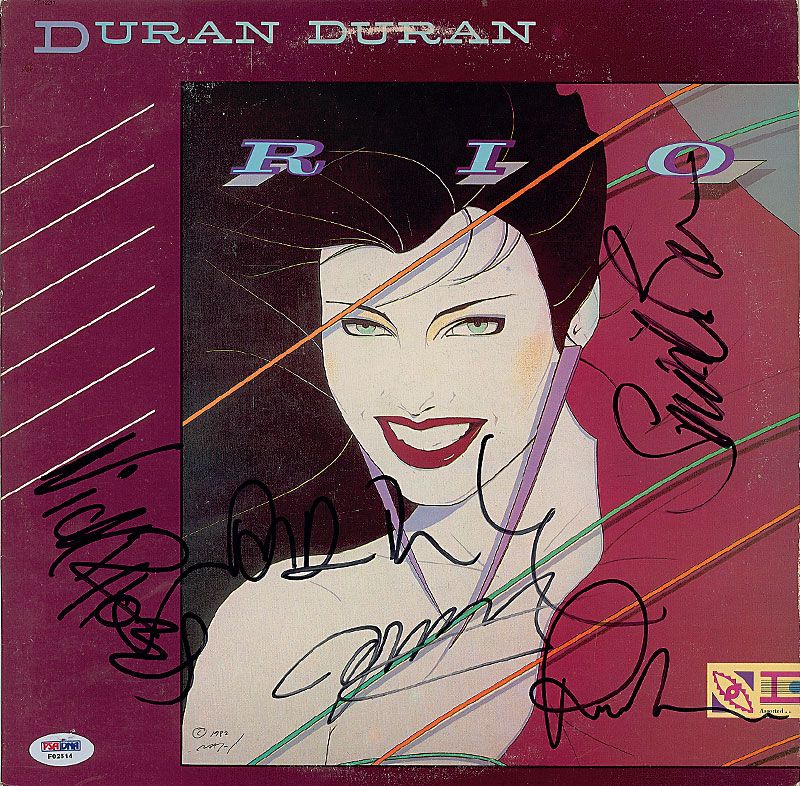 Rio album signed on the front cover in black felt tip by all the original members: Simon Le Bon, John Taylor, Andy Taylor, Nick Rhodes, and Roger Taylor. In fine condition, with mild ‘ring of wear’ to both covers and a PSA/DNA authentication label affixed to lower corner. The record is not included. Accompanied by a certificate of authenticity from PSA/DNA.