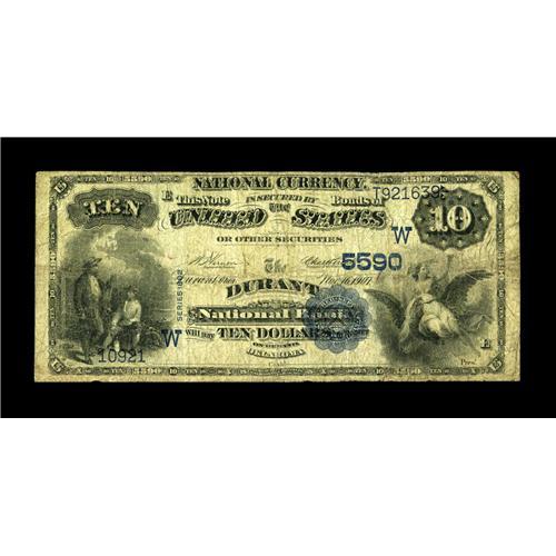 <B>Durant, OK</B></I> - $10 1882 Value Back Fr. 578 <B>The Durant NB</B></I> Ch. # (W)5590<BR>Just 41 $10 Value Backs are recorded as extant for the entire state. This <B>Very Good-Fine</B></I> example is nicely centered and has no distractions inconsistent with the assigned grade.<BR><BR><b>Shipping:</b> Coin/Currency (<a target="_blank" href="http://www.heritageauctions.com/common/shipping.php">view shipping information</a>)