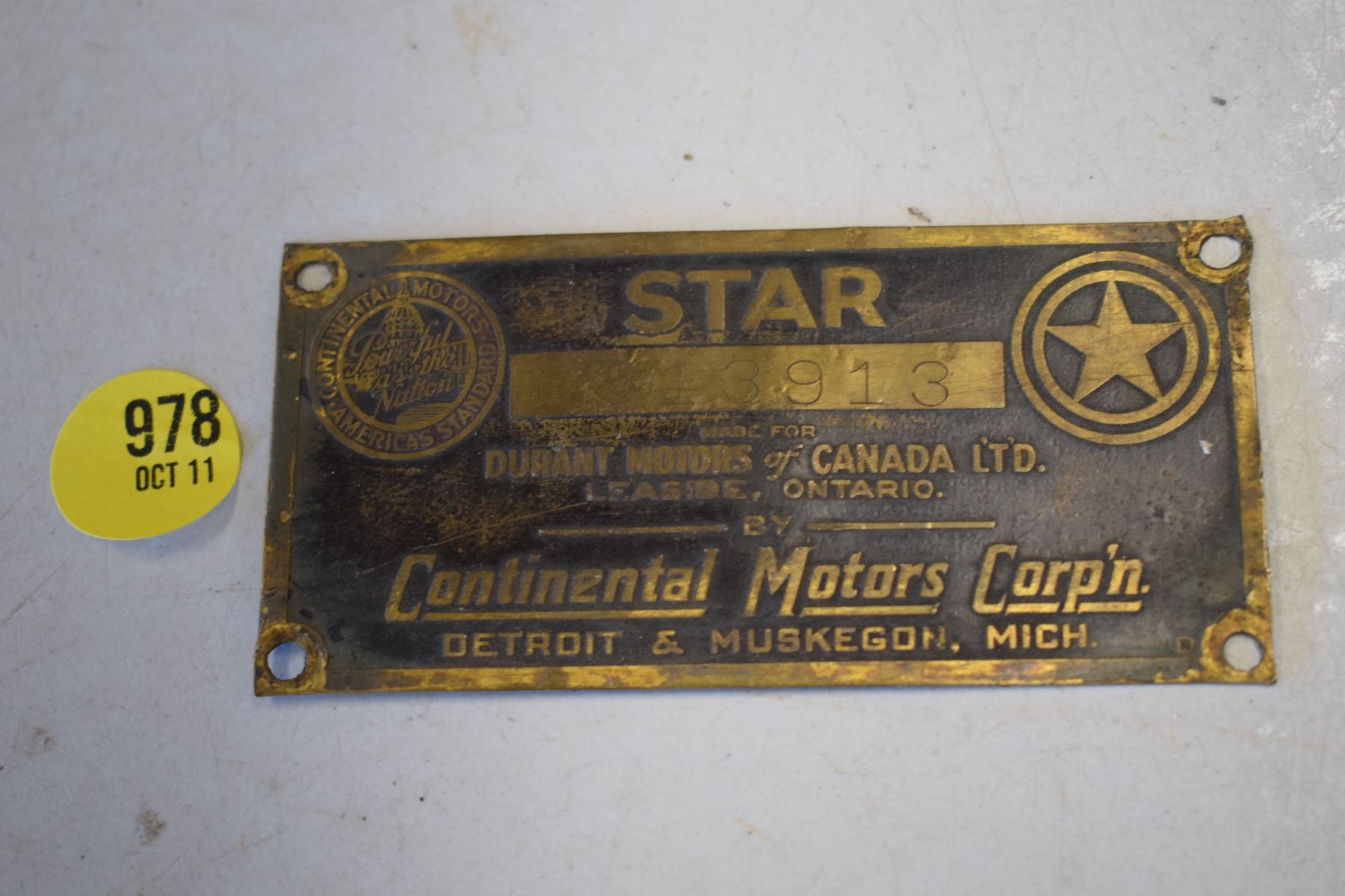 Durant star motor tag
