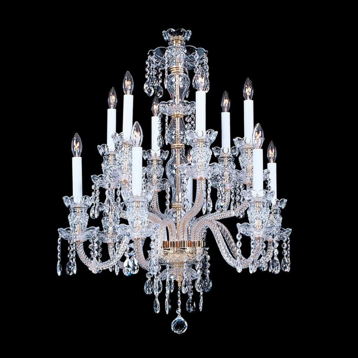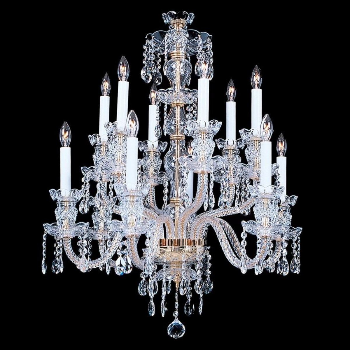 22" wide x 31" long 12 lights (6 lower, 6 upper) Candelabra base, 40 watt max per socket. Chain and mounting hardware included. Assembled in US of imported and domestic components. UL Dry Location Shown in Brass 30 lbs