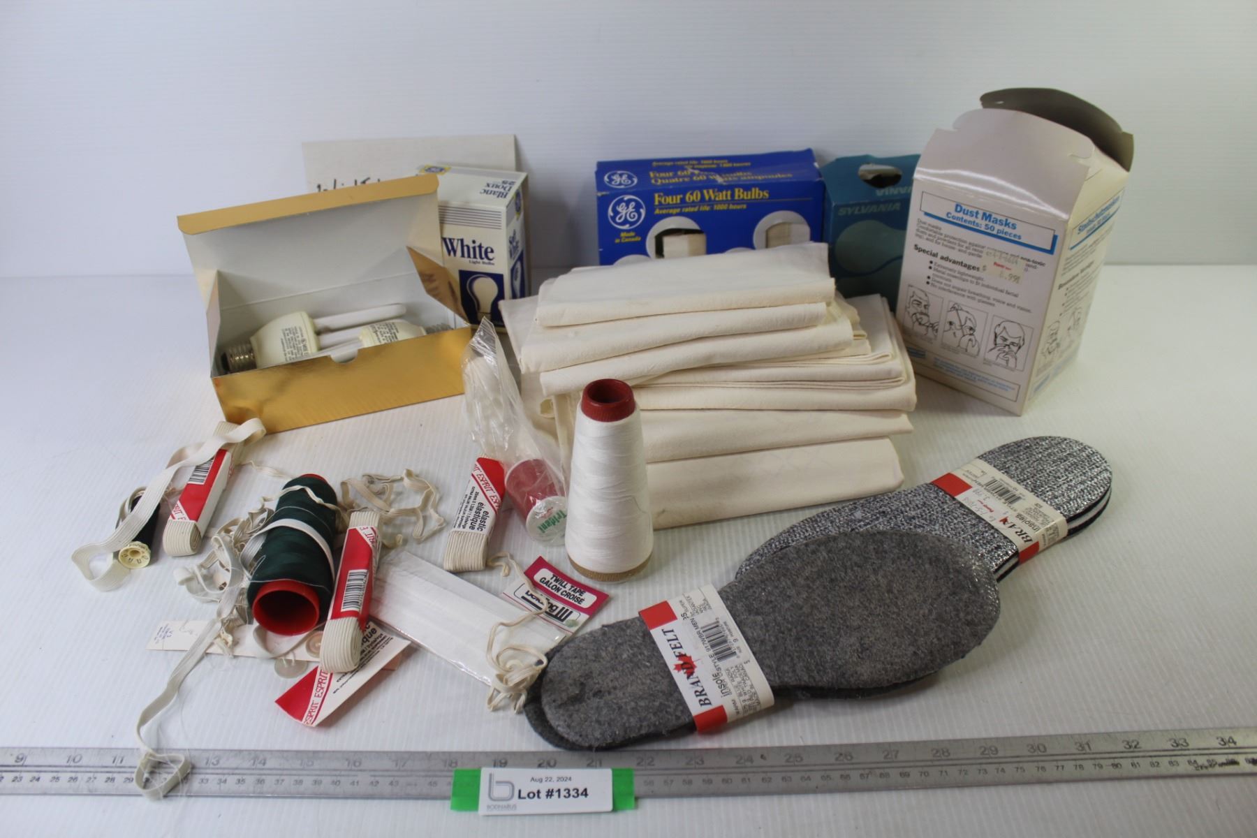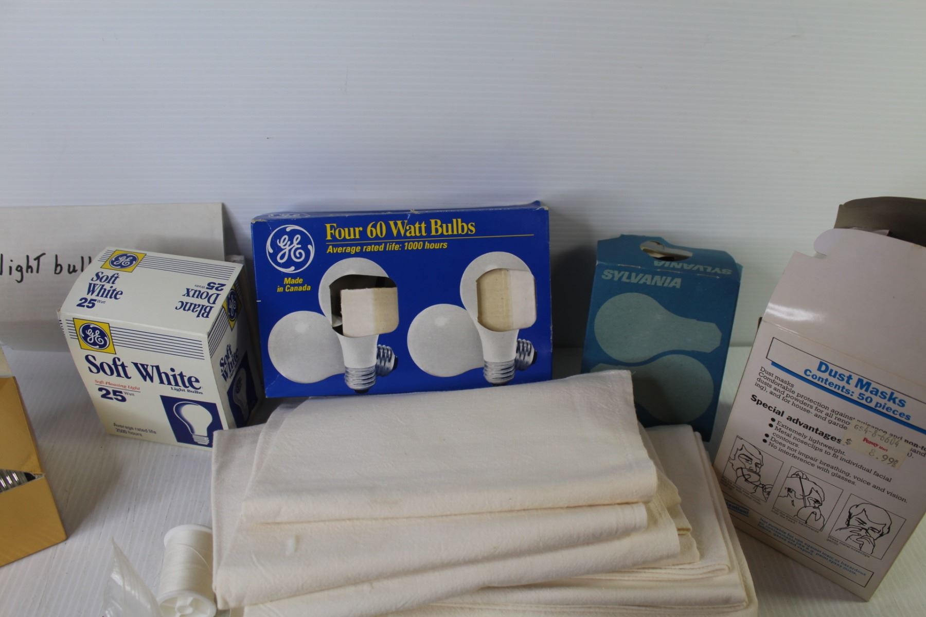 Dust Masks - Assorted Light Bulbs - Sewing Items - Boot Insoles - Cloths