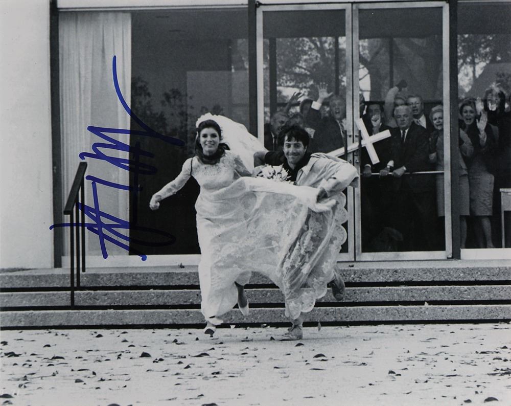 Satin-finish 10 x 8 photo of the wedding scene from the 1967 film The Graduate, signed in blue felt tip by Dustin Hoffman. In very fine condition. Originally obtained by in-person specialist Mike Wehrmann.