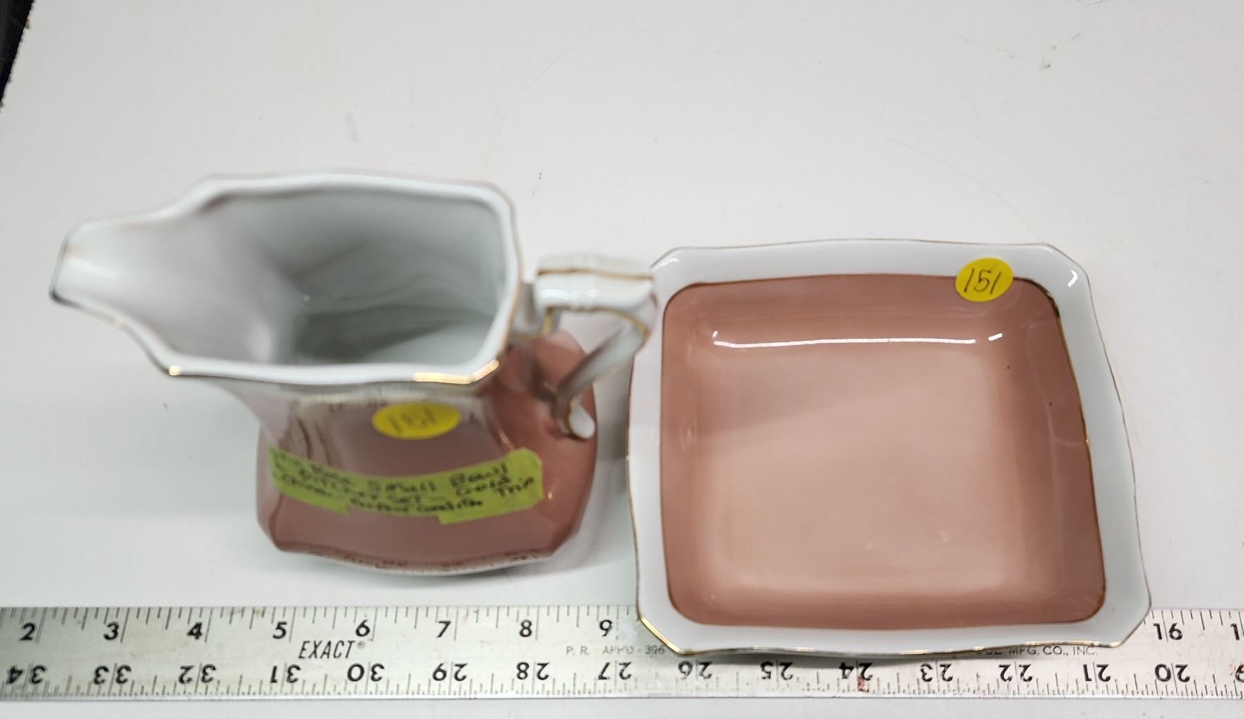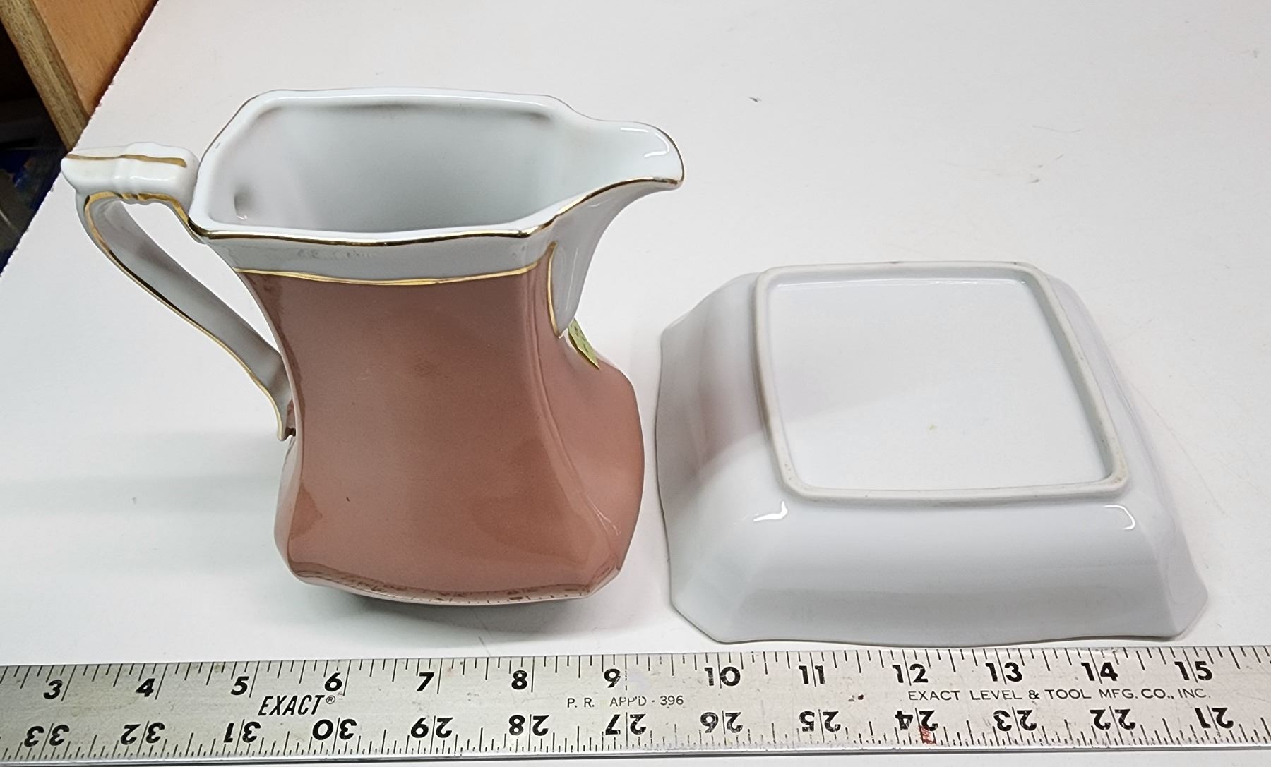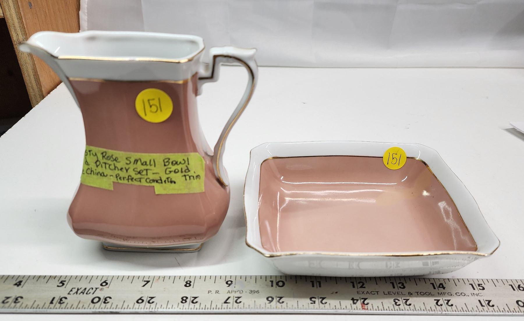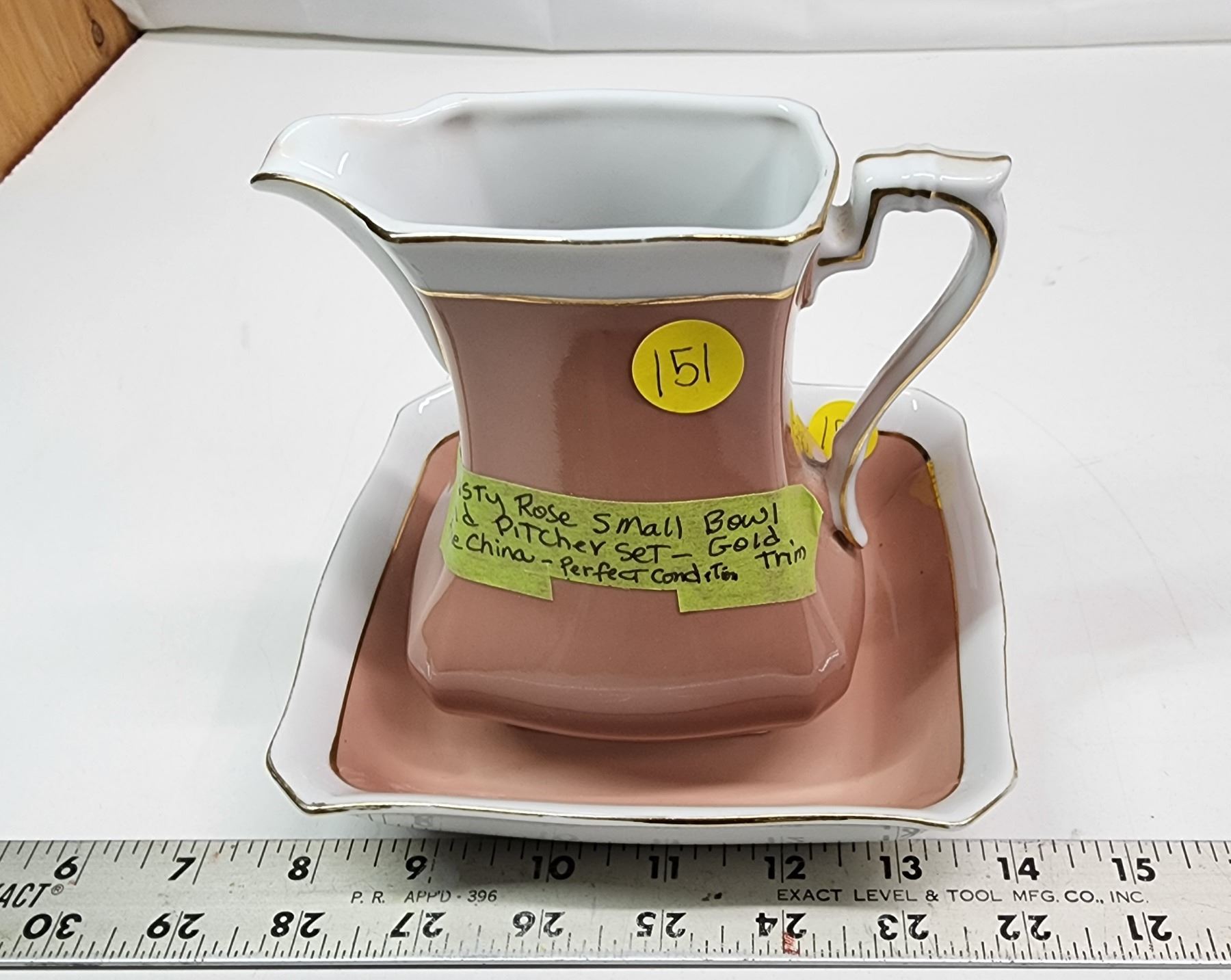 Dusty Rose Gold Trimmed Vintage Bowl & Pitcher Set - Fine China - no chips
