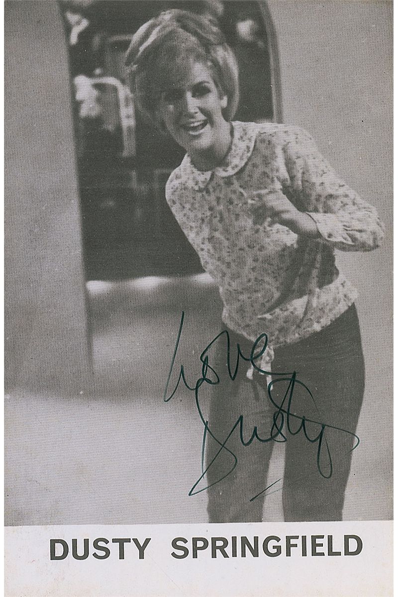 Vintage 3.75 x 5.5 promo card photo, signed in black felt tip, “Love, Dusty.” In fine condition. Accompanied by a certificate of authenticity from Tracks.