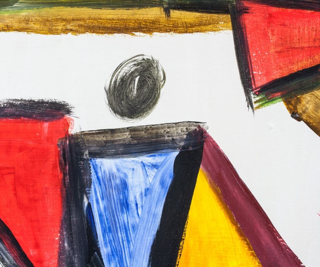 Oil on canvas, framed. Featuring an abstract expressionist composition. Signed Bram v. Velde on the lower right corner. 40 x 32 cm (45.5 x 12.5 inches). Framed size: 48 x 39 cm (18.75 x 15.25 inches). Provenance: This lot carries limited provenance from a Southern Ontario estate.