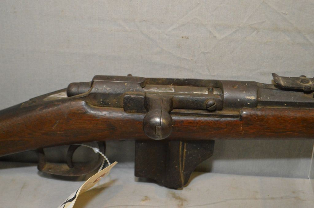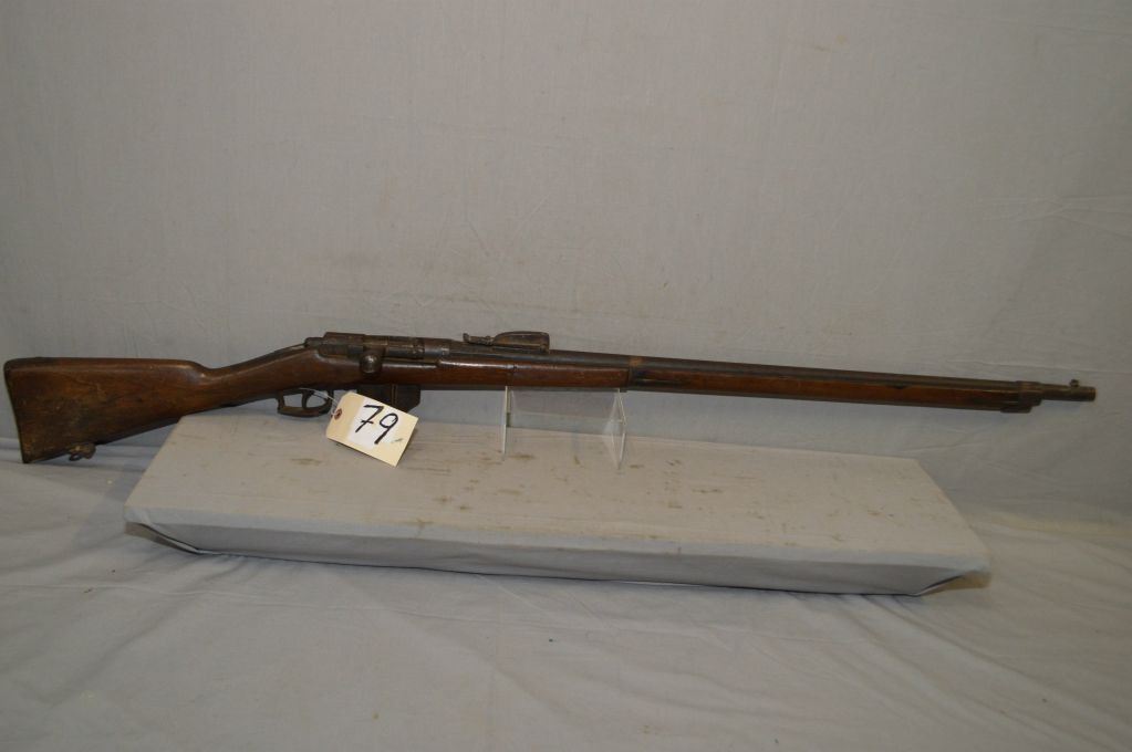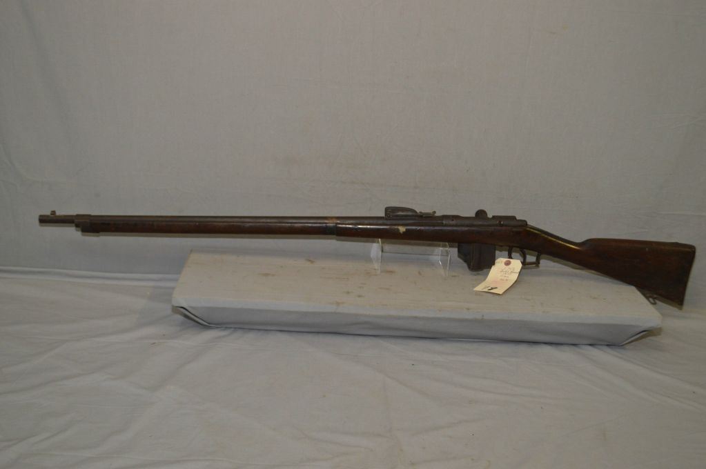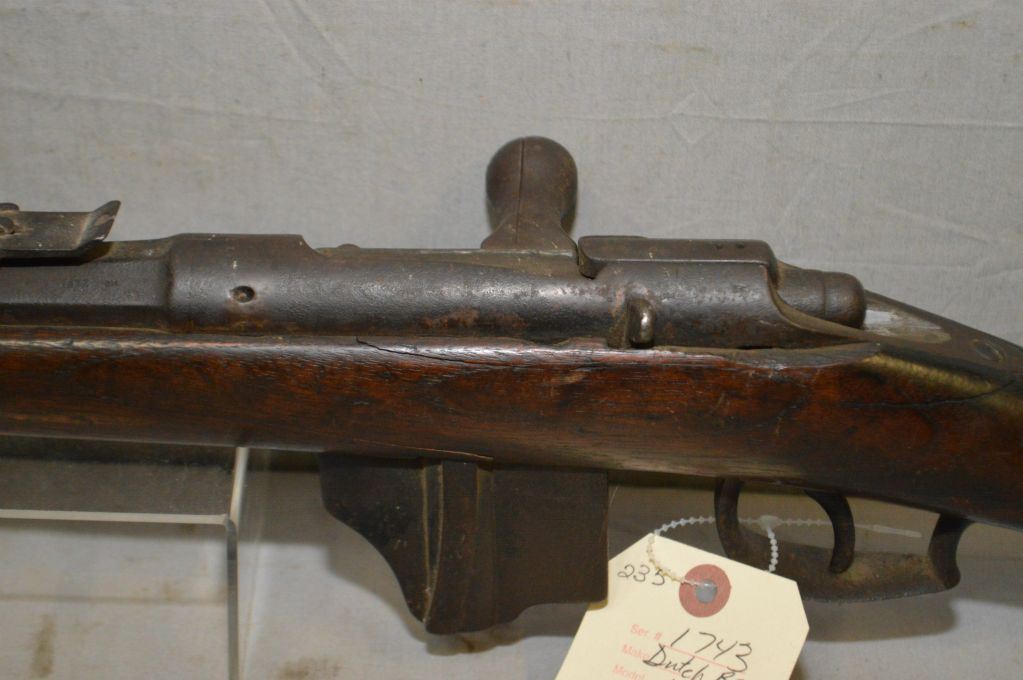 Dutch Beaumont Model 1877 .11 MM Cal Bolt Action Full Wood Military Rifle w/ 32 1/2" bbl [ patchy blue finish turning brown with some surface rust, full wood stock, cracked & chipped on left side, missing the back band, & cleaning rod ] Ser # 1743