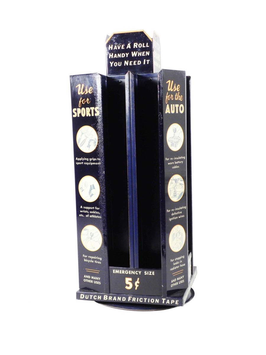 Dutch Brand Friction Tape Tin Store Display. Used for sports, auto, house and in the shop. Excellent condition. 7 1/2 X 18 X 7 1/2 inches.