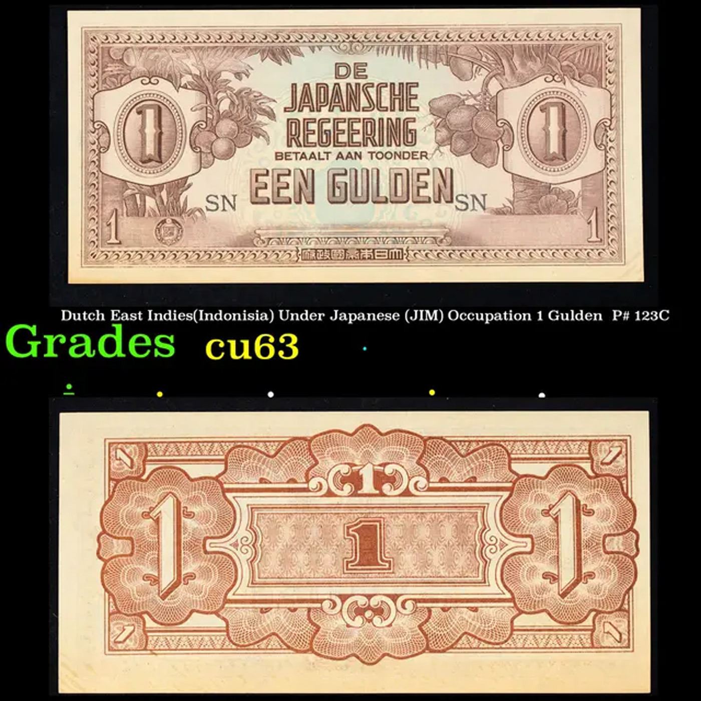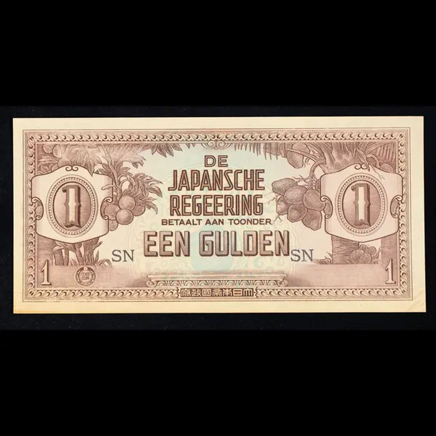 Dutch East Indies(Indonisia) Under Japanese (JIM) Occupation 1 Gulden P# 123C Grades Select CU. Japanese invasion money, officially known as Southern Development Bank Notes (Japanese: ??????? Dai T?-A Sens? gunpy?, "Greater East Asia War military scrip"), was currency issued by the Japanese Military Authority as a replacement for local currency after the conquest of colonies and other states in World War II. Japan printed this currency for many countries, including Malaysia, Singapore, North Borneo, Sarawak, Burma, Brunei, and several Oceania territories controlled by Australia.