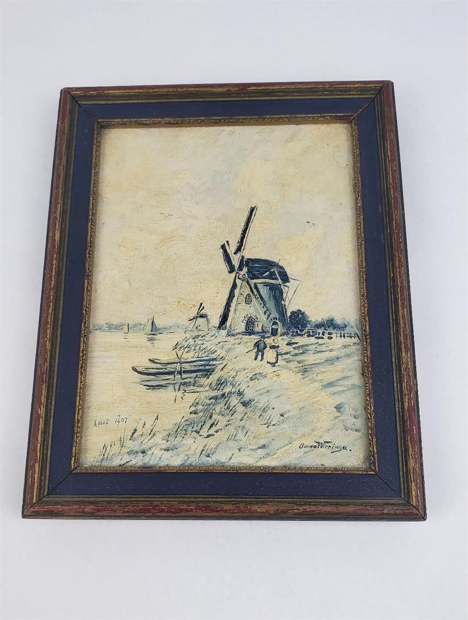 Old oil on canvas of a Dutch Scene. Artist is ONNO Wieringa. 7.75" by 9.5".