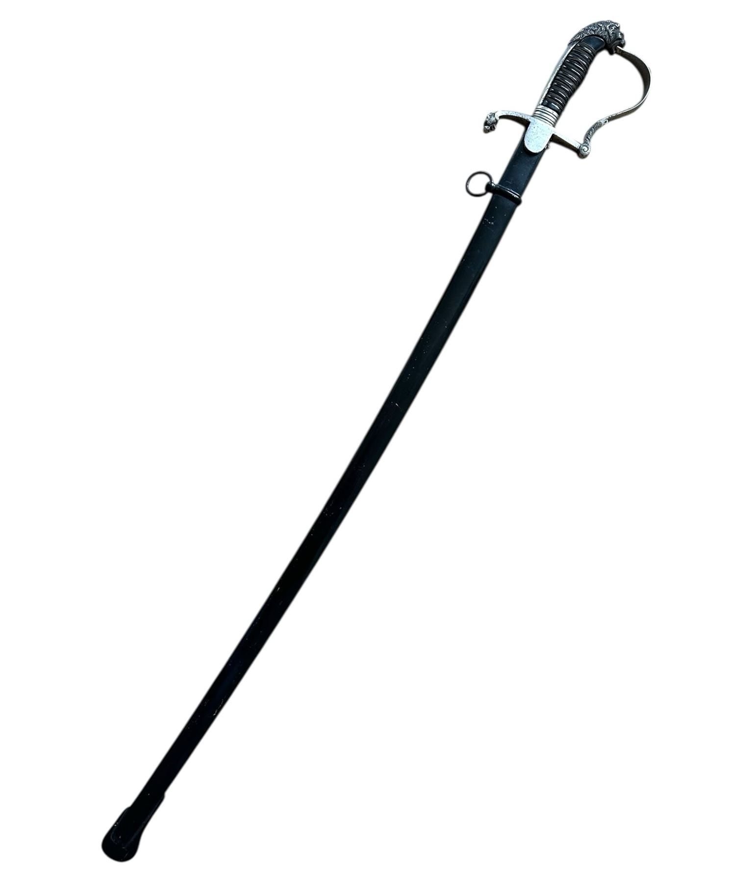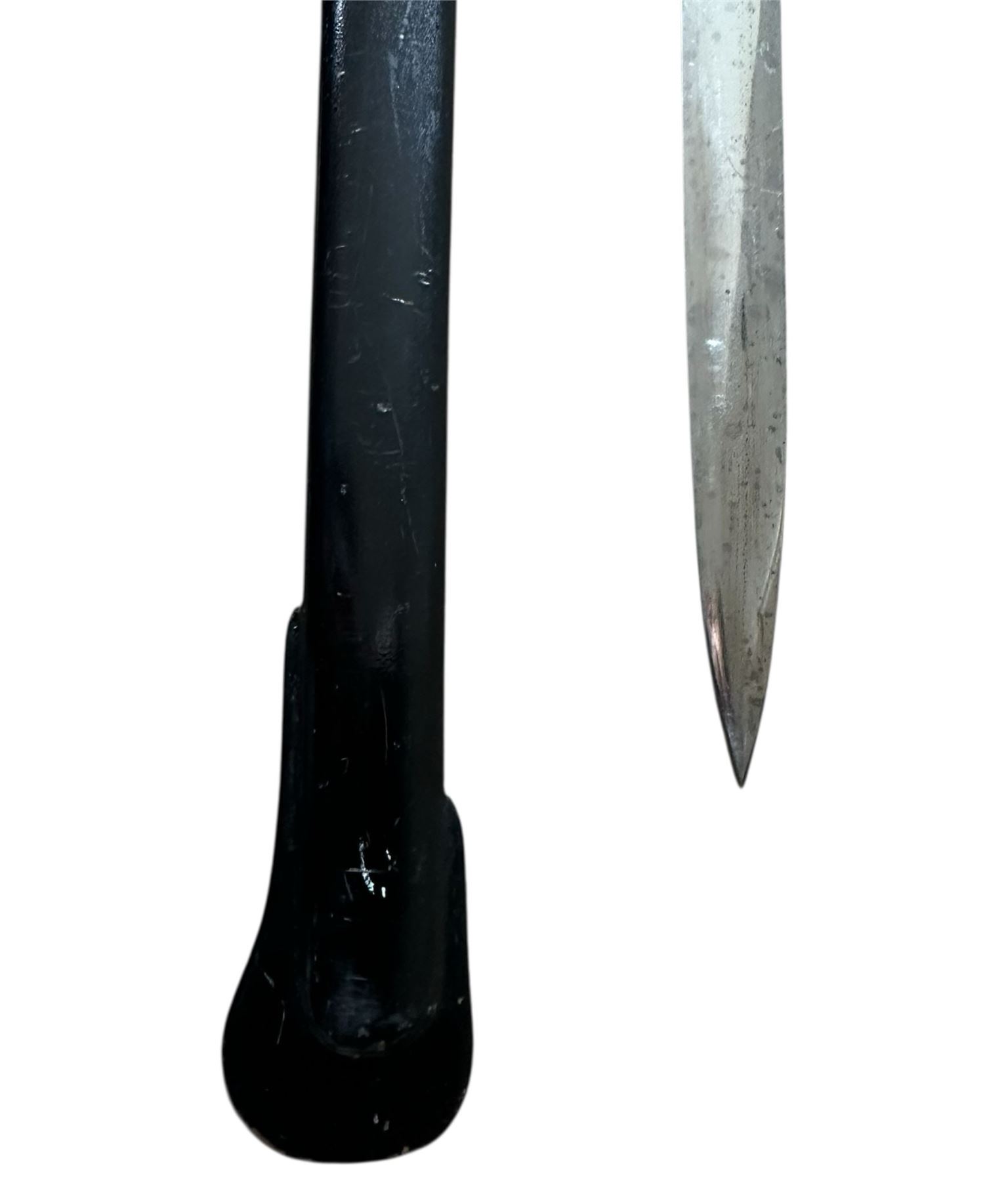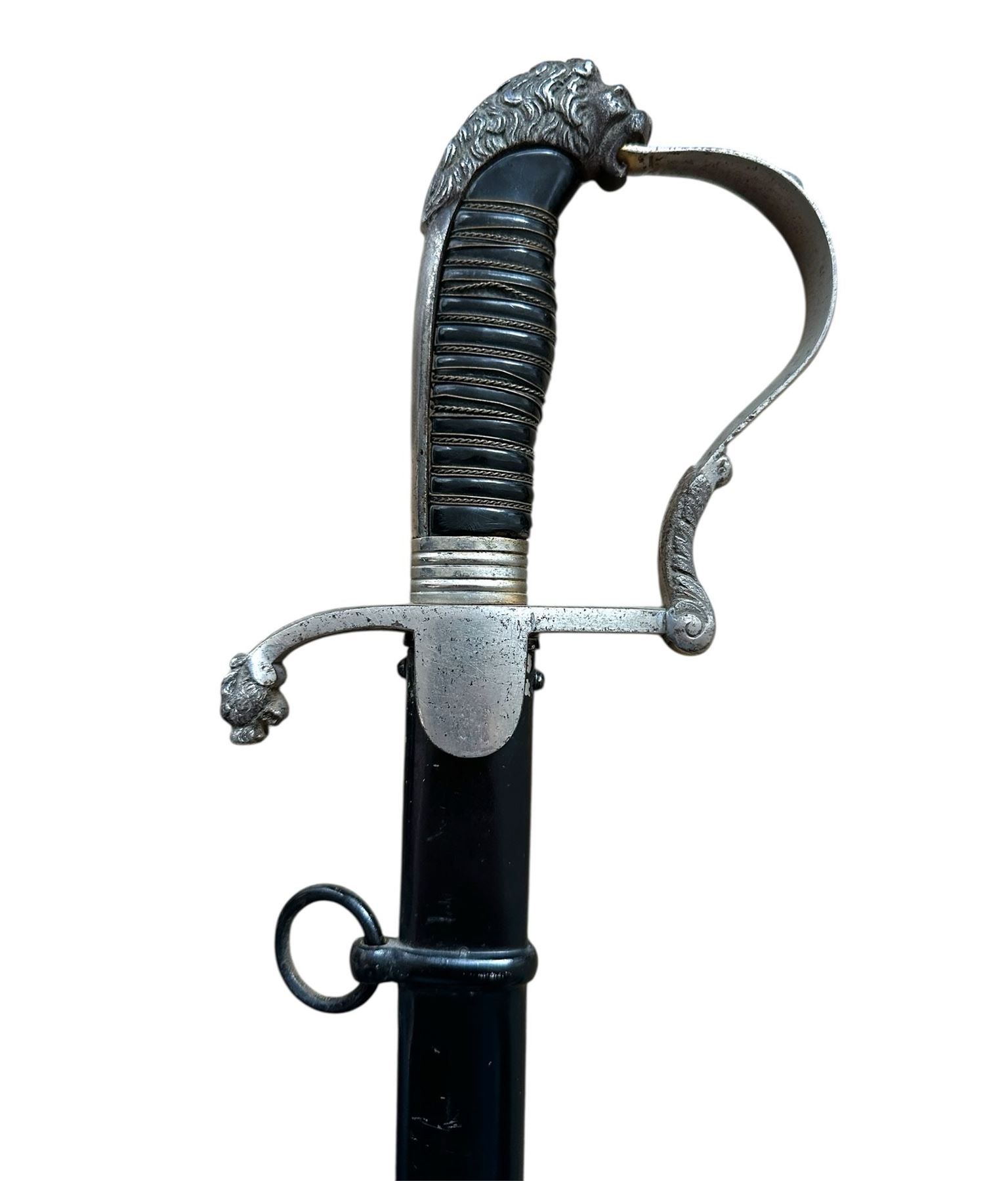 This very unique Dutch saber is in good condition and is a m1912 'Yzerhouwer' Police saber which was personalized by a Dutch collaborator NSB or Dutch SS during WorldWar II.The saber features a metal 'Wolfsangel' on the hilt, has a silver patina and the well known lion's head at the hilt.During World War Il, it was common for Dutch Police Officers to wear their saber at ceremonies or inspections.