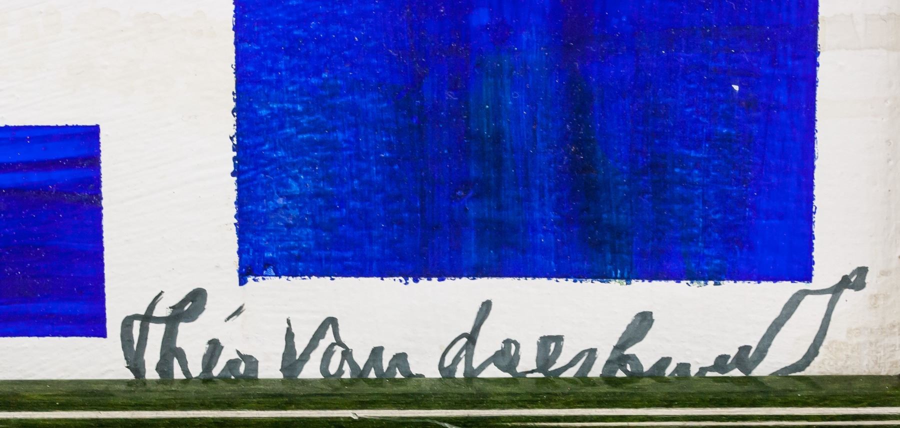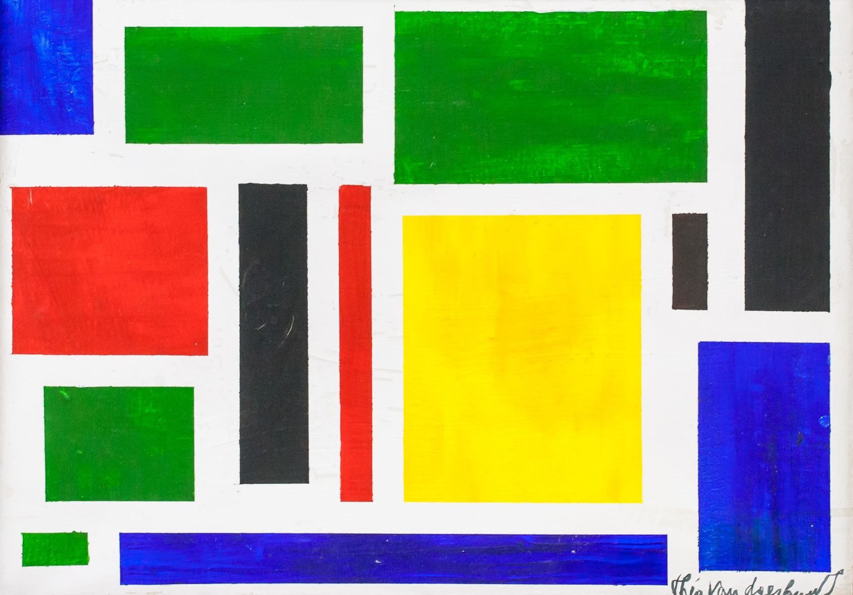 Oil on canvas, framed. Featuring composition in the De Stijl style. Signed "Theo Van doesburg" in the bottom right corner. 38 x 53 cm (15 x 21 inches). Provenance: This lot carries limited provenance from a Southern Ontario estate.