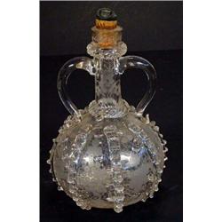 Dutch glass twin handled decanter with etched vine leaves, enamelled 22 to base, 21cm high
