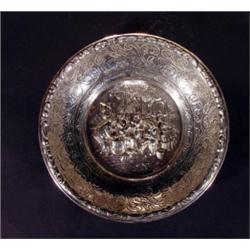 Dutch silver bowl embossed with scenes of merriment, 17cm diameter