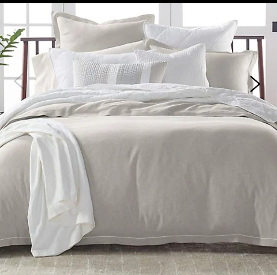 King Size Hotel Collection Duvet Cover, Linen Blend, Light Sand Color, Interal Ties, Zipper Closure, Machine Washable, Shelf Pull, New, Sells For $420.00