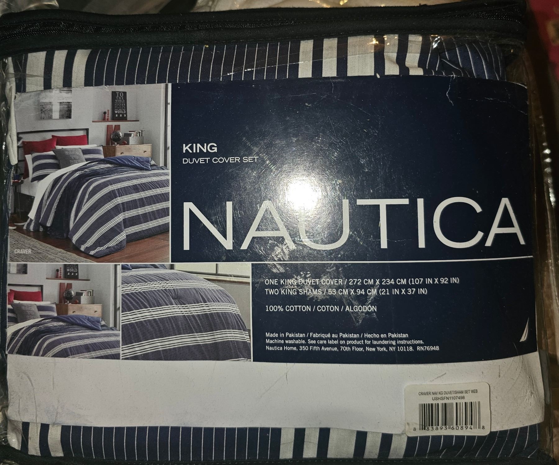 Nautica Craver King Size Duvet Cover Set, Includes Cover, 2 King Size Shams, Brand New