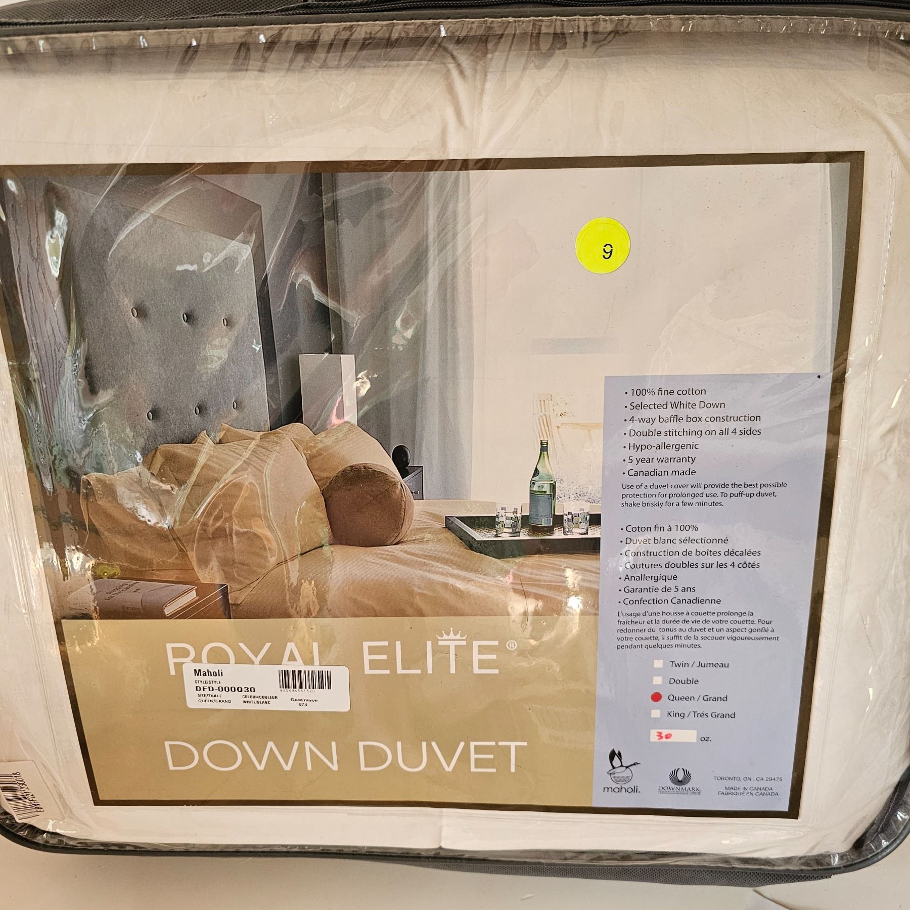 Royal Elite, Queen Size Down Duvet, 30oz, 100% Cotton, Hypoallergenic, Shelf Pull, New Condition