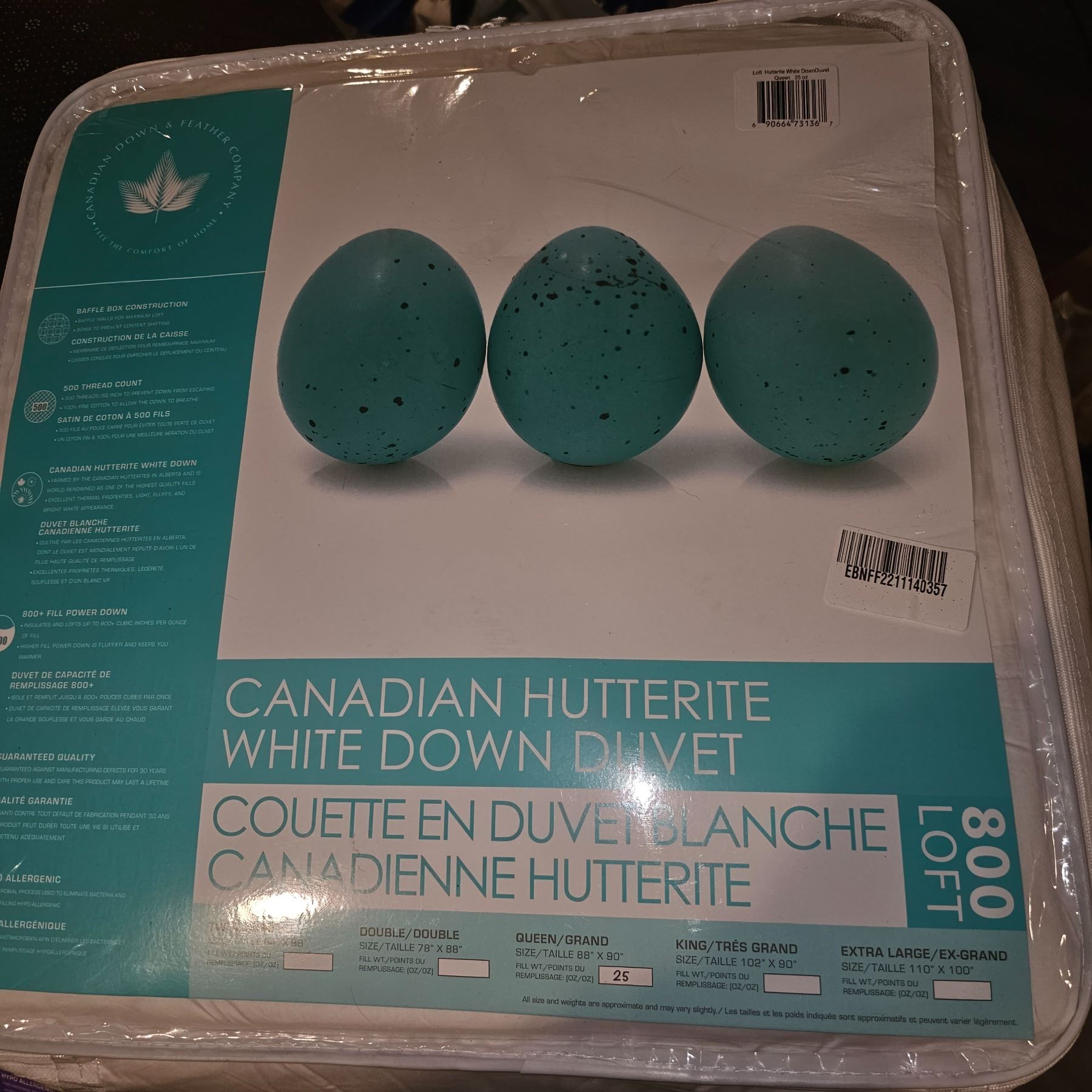 Canadian Hutterite White Down Duvet Queen Size, Brand New