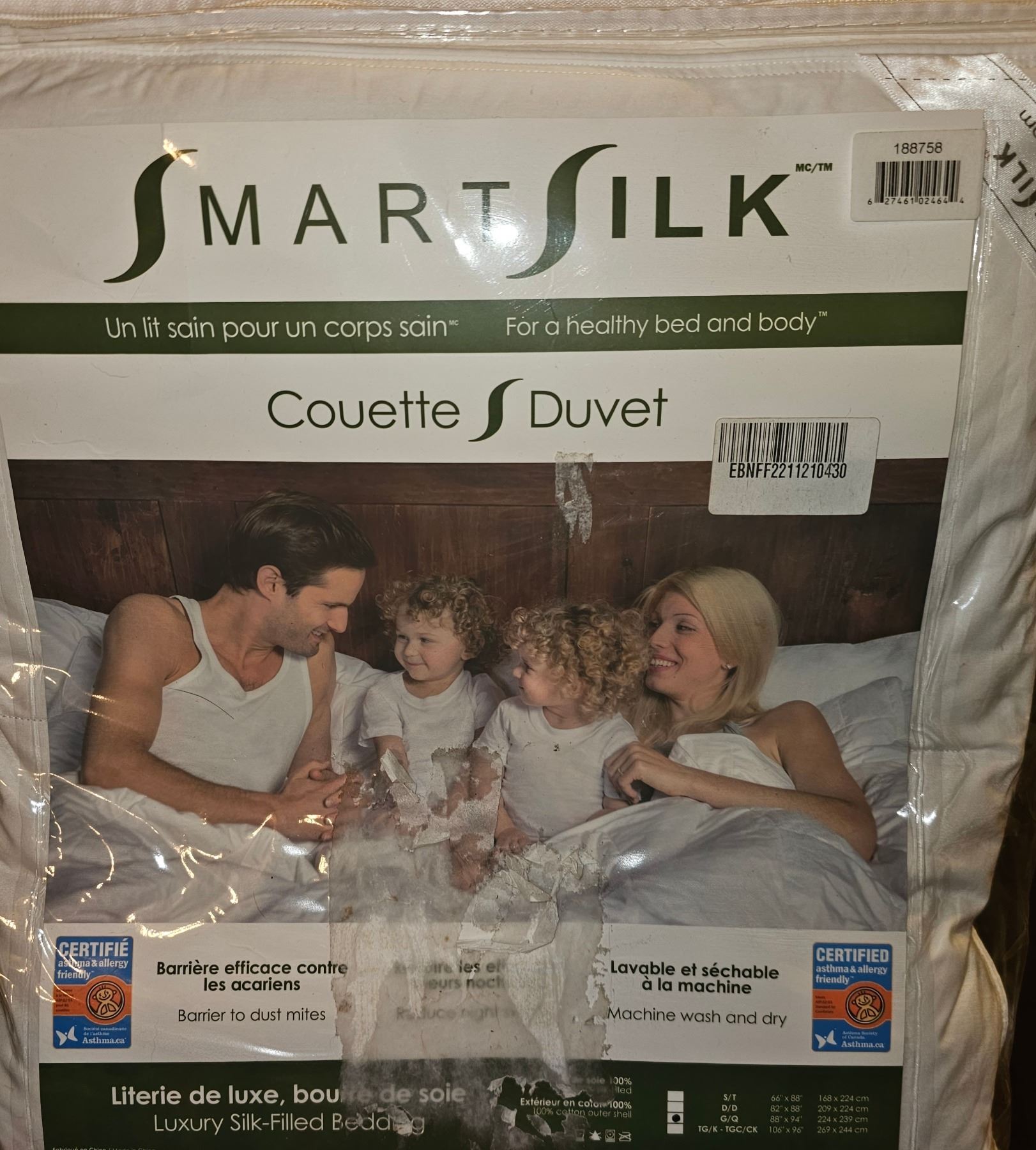 Smart Silk Queen Size Duvet, Silk Filled Bedding, New Condition