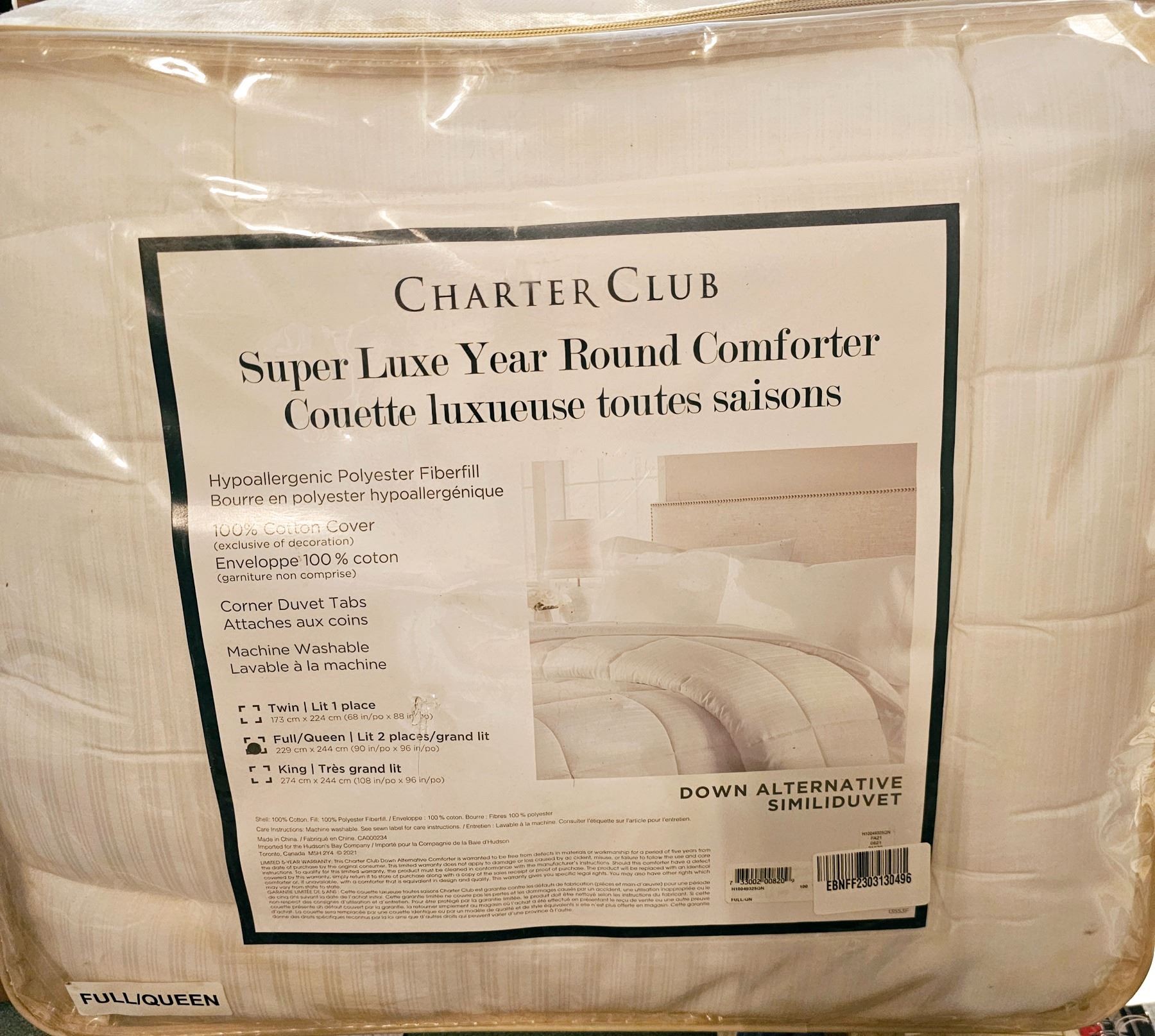 Charter Club, Super Lux year-round comforter, Down alternative, Queen size, new