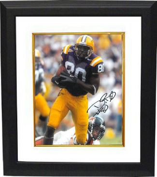 Dwayne Bowe accepted an offer from Nick Saban to play for Louisiana State University on an athletic scholarship. Regarded as one of the top wide receivers available in the 2007 NFL Draft. Dwayne Bowe has hand autographed this LSU Tigers 8X10 Photo. Certificate of Authenticity from Athlon Sports. Custom White Mat and Premium Black Color Framed as shown.