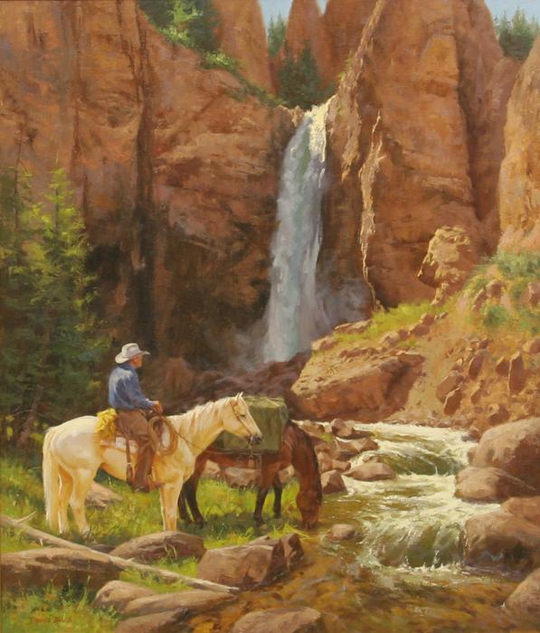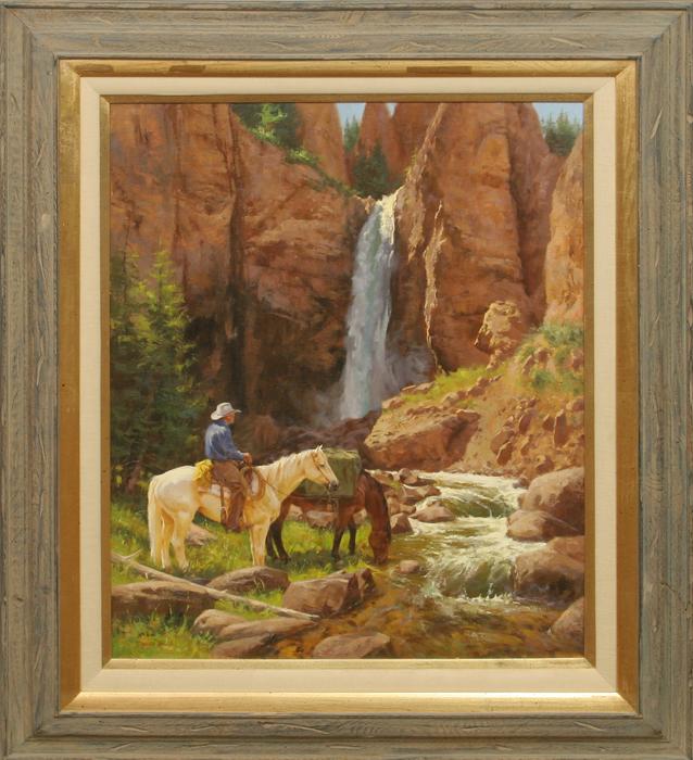 Dwayne Brech (b. 1946). Near The Falls. 30" x 24" oil on canvas. signed lower left. Condition Report: Black lights clean.