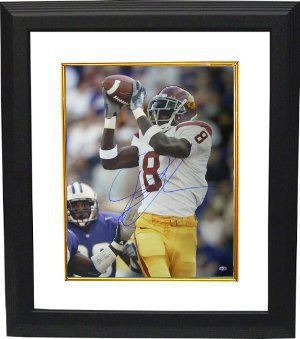 A two-time All-American, Dwayne Jarrett was USC's all-time receptions leader with 216 and the Pacific 10 Conference's all-time leader in touchdown receptions with 41. On January 1, 2007, he was named offensive MVP of the Rose Bowl Game with a career high 203 receiving yards and two touchdowns in the 32-18 win over Michigan. Dwayne Jarrett has hand autographed this USC Trojans 16x20 Color Photo. Jarrett Hologram and Certificate of Authenticity from Athlon Sports. Custom White Mat and Premium Black Color Framed as shown.