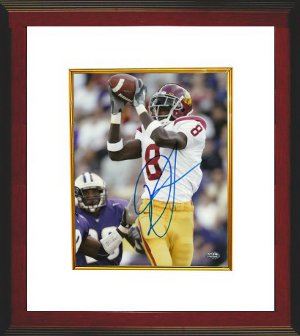 A two-time All-American, Dwayne Jarrett was USC's all-time receptions leader with 216 and the Pacific 10 Conference's all-time leader in touchdown receptions with 41. On January 1, 2007, he was named offensive MVP of the Rose Bowl Game with a career high 203 receiving yards and two touchdowns in the 32-18 win over Michigan. Dwayne Jarrett has hand autographed this USC Trojans 8x10 Color Photo. Custom White Mat and Premium Wood Color Frame. Jarrett Hologram and Certificate of Authenticity from Athlon Sports.