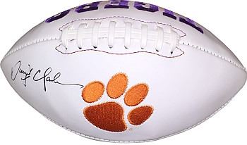 Dwight played for the San Francisco 49ers of the National Football League (NFL) from 1979 to 1987. With the 49ers, Clark played on two Super Bowl championship teams. He caught the winning touchdown pass thrown by quarterback Joe Montana in the NFC Championship Game in January 1982 against the Dallas Cowboys. The play, immortalized as "The Catch," propelled the 49ers to their first Super Bowl championship. Clark played college football at Clemson University before being drafted by the 49ers in the 10th round of the 1979 NFL Draft. Dwight Clark has hand autographed this Clemson Tigers Logo Football. MAB Hologram and Certificate of Authenticity from Athlon Sports Collectibles.