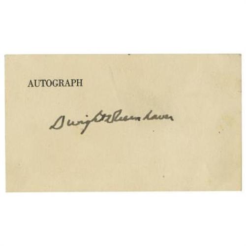 <B>Dwight D. Eisenhower Signature</B></I> “<I>Dwight D. Eisenhower</B></I>”. 4.5” x 2.75”, on autograph card, in ink, mounting remnants on verso, else fine. A nice, bold signature of the famous WWII general and 34th President of the United States. <BR><BR><b>Shipping:</b> Flat Material, Small (<a target="_blank" href="http://www.heritageauctions.com/common/shipping.php">view shipping information</a>)